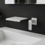 Grifería vanguardista diseñada para ser instalada empotrada a la pared. Su caño rectangular plano proporciona un elegante efecto cascada al verter el agua. El acabado en NEGRO MATE es ideal para baños modernos y minimalistas. Es una grifería monocomando que funciona como mezcladora, controlando tanto el agua fría como la caliente.
