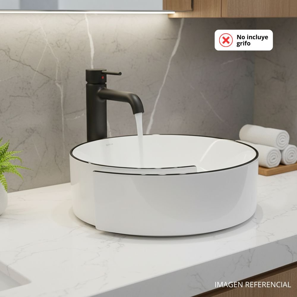 Añade un toque de vanguardia a tu baño con este lavabo sobre encimera.