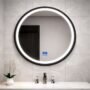 Espejo circular inteligente con marco negro de 700×700 mm, diseñado para transformar tu baño con elegancia y tecnología de vanguardia.