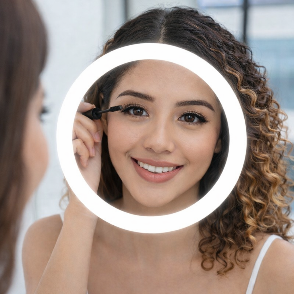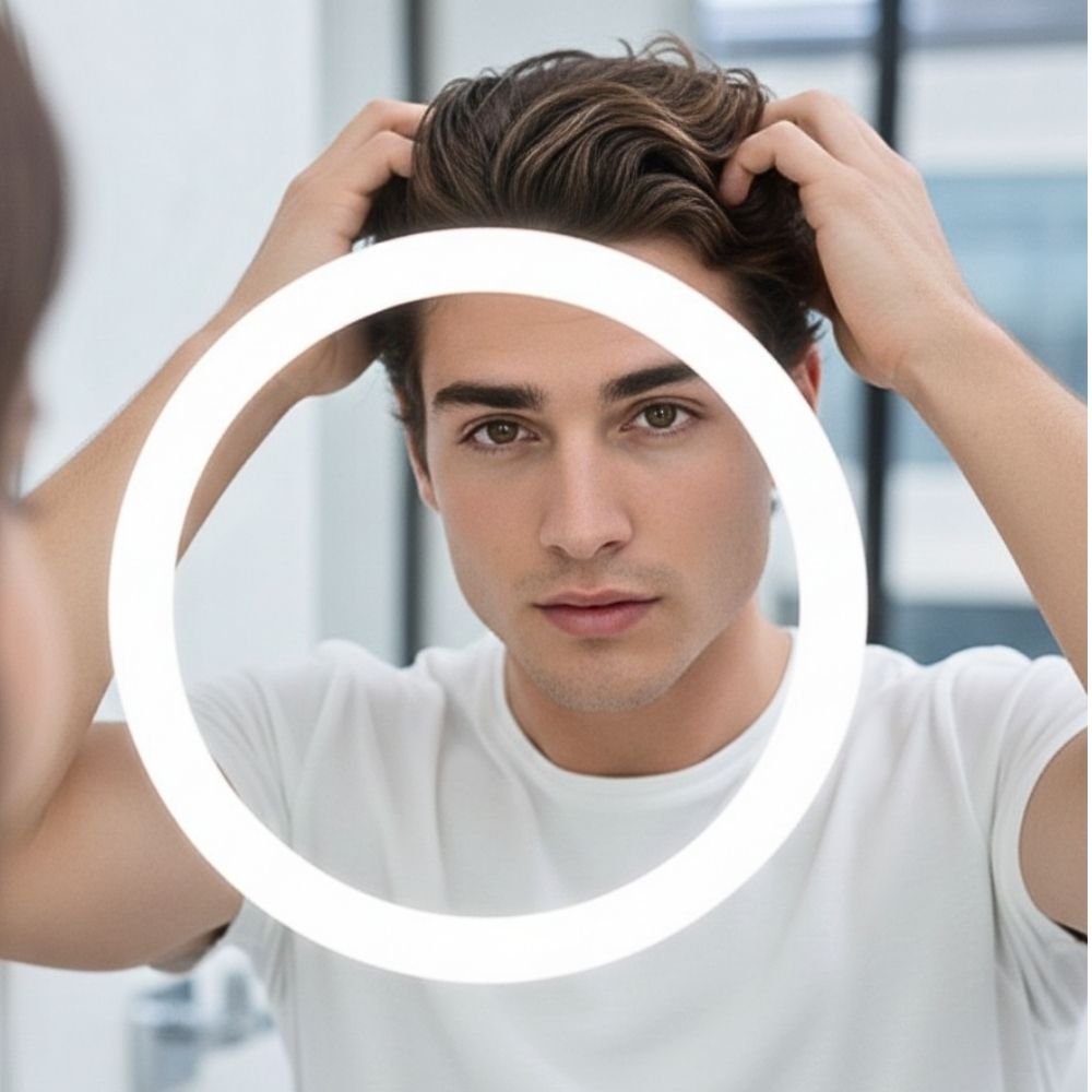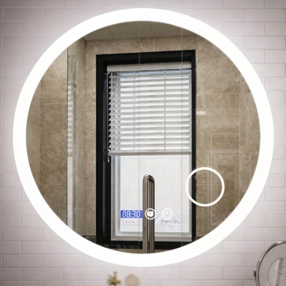 Espejo redondo LED de 60 cm x 60 cm con sistema táctil enmarcado y tres tonos de luz ajustables. Ideal para baños y tocadores, brinda una iluminación clara y uniforme para maquillaje y cuidado personal. Su diseño moderno aporta elegancia y amplitud a cualquier espacio. Funcional, decorativo y fácil de usar con solo un toque.