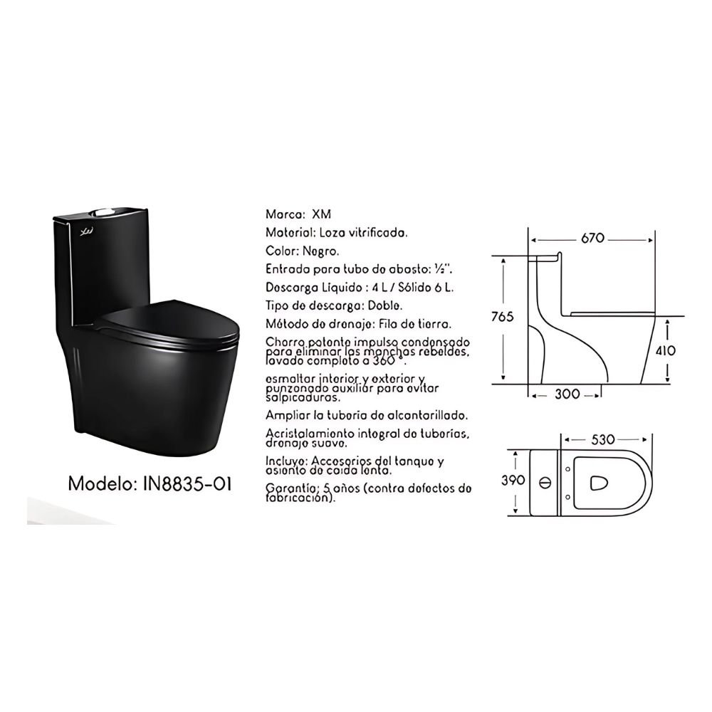 INODORO ONE PIECE MINIMALISTA BLANCO Y NEGRO 74x66x36 cm