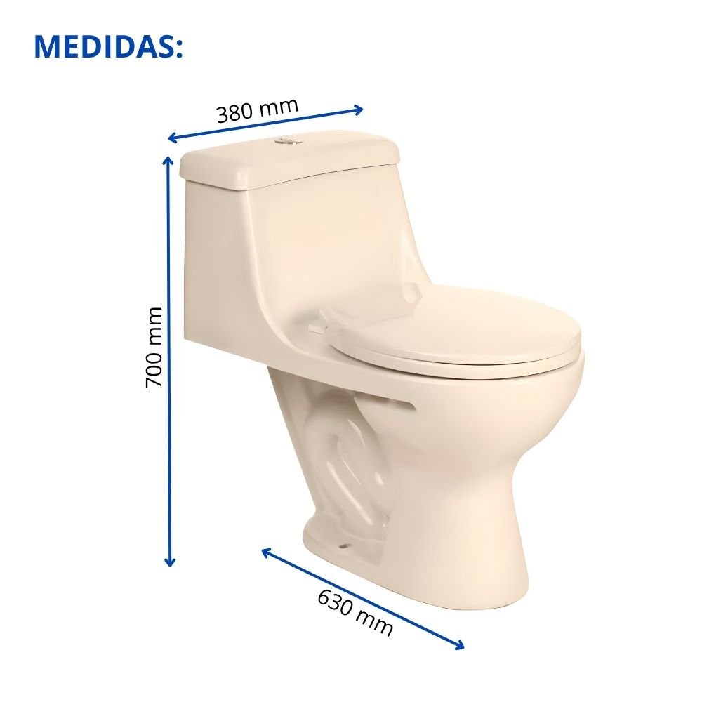 Moderno inodoro color beige con diseño de tanque alto. Cuenta con Descarga Dual ecológica (4/7 L) y asiento elongado de caída lenta para máximo confort y silencio. ¡El estilo sofisticado que tu baño necesita!