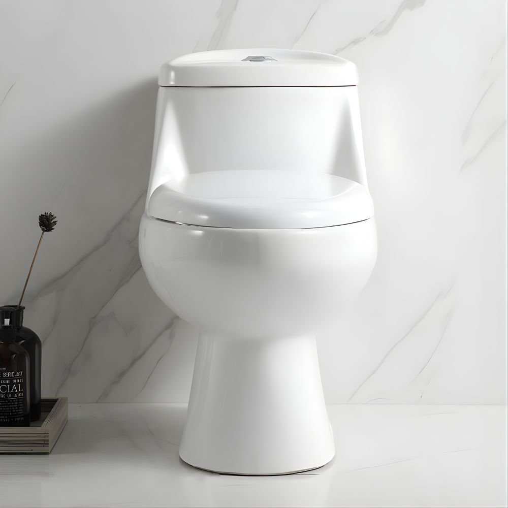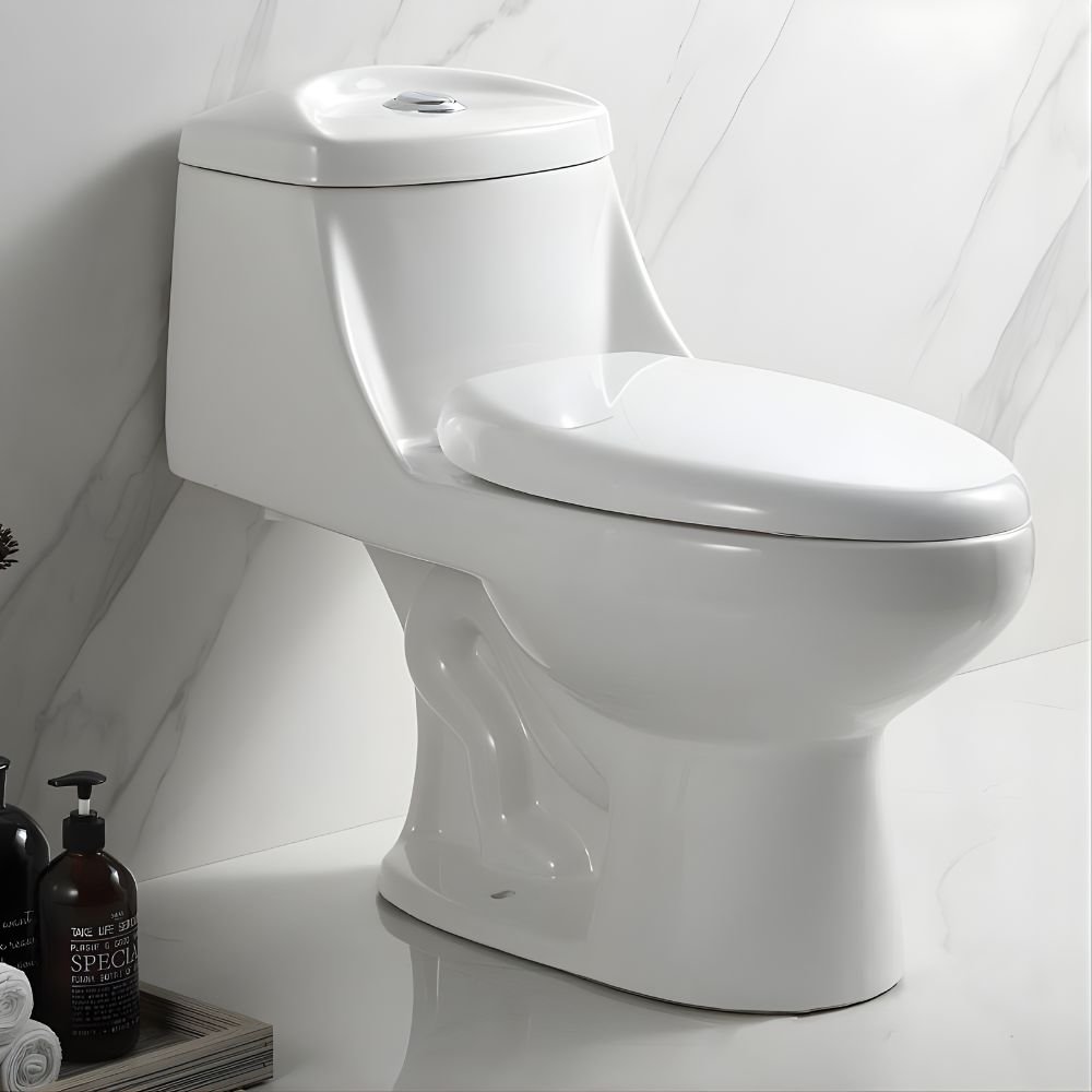 Inodoro Curvo en color Blanco con Tanque Alto y estilo de una pieza.