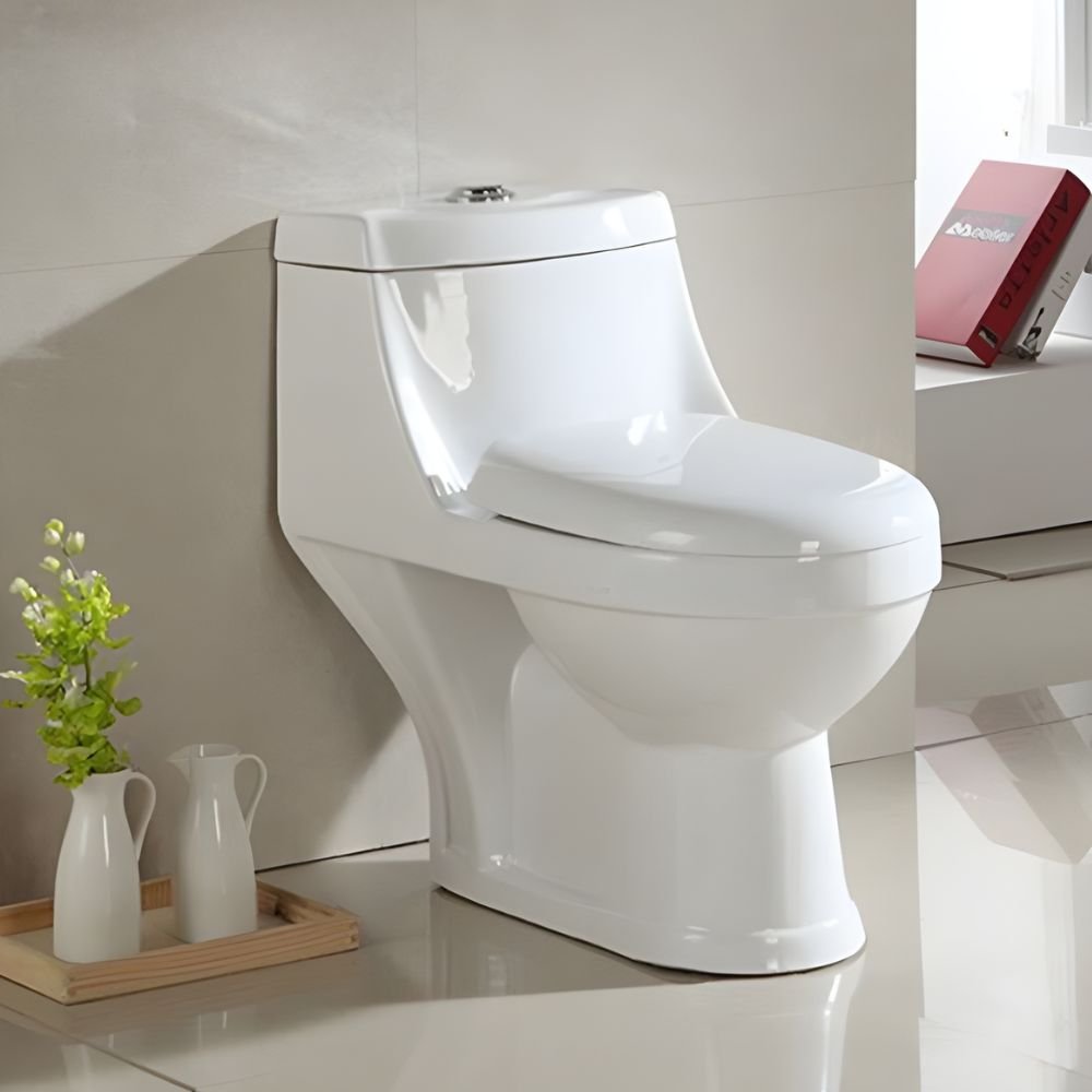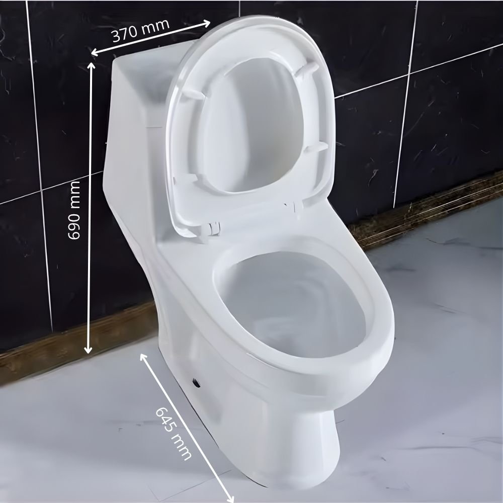 Inodoro Blanco de Tanque Alto y diseño Curvo. Ofrece Descarga DUAL (3/6 L) para ahorro de agua e incluye Asiento Elongado con Caída Lenta (cierre suave).