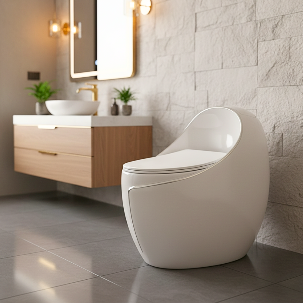 Añade una pieza de arte minimalista a tu baño con este inodoro de diseño ovalado y futurista. Su color blanco con líneas plateadas se complementa con cualquier espacio moderno. Te garantiza una higiene superior y fácil mantenimiento.
