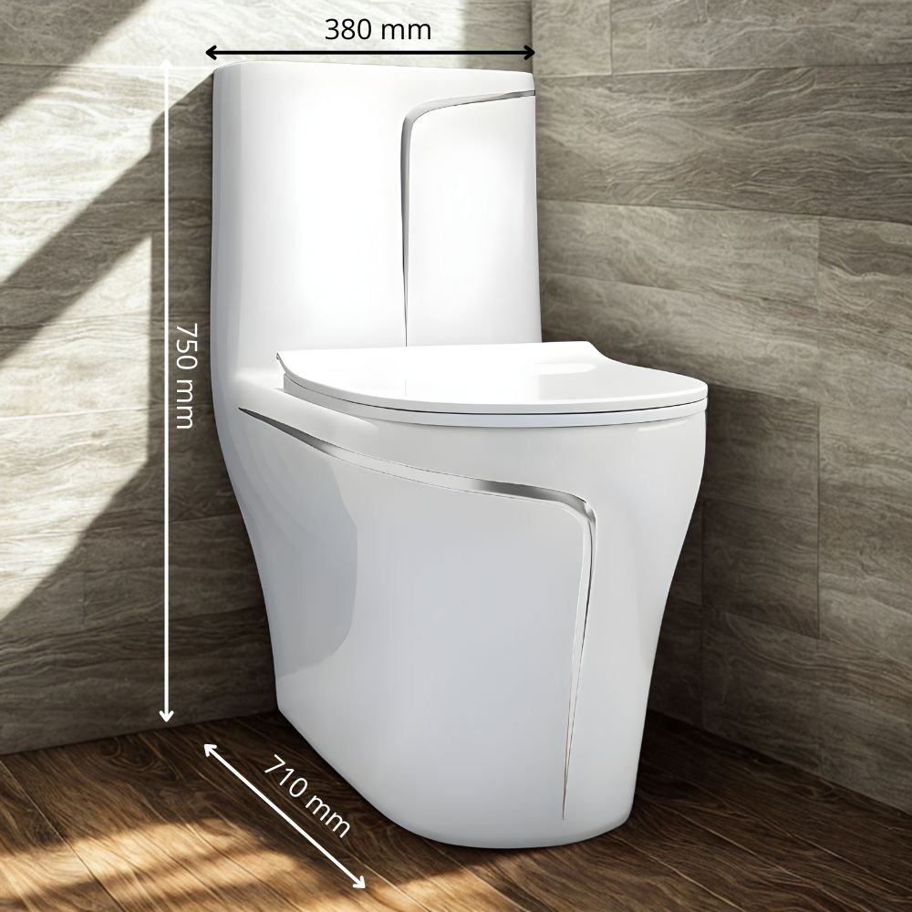 Inodoro de Lujo BLANCO PLATEADO con diseño elegante y moderno. Cuenta con descarga dual ecológica (