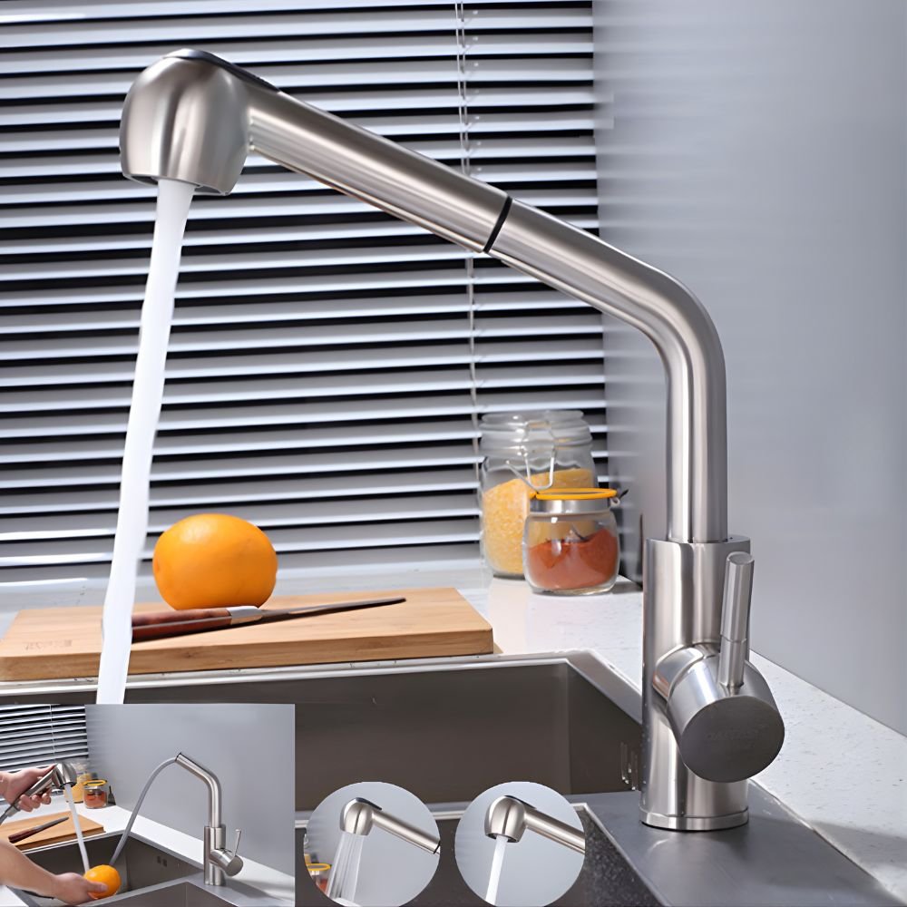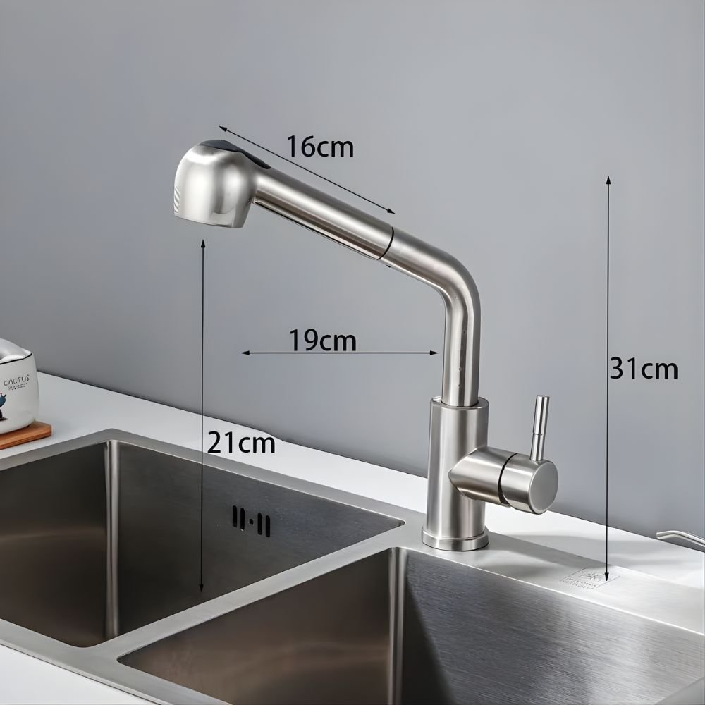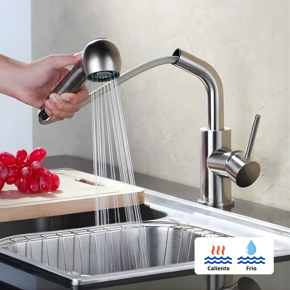Diseñado para la eficiencia en la cocina, este grifo monomando combina un diseño limpio con la máxima funcionalidad. Su acabado Mate (similar a níquel cepillado) aporta resistencia y estilo. Incluye una práctica manguera extensible con cabezal ergonómico para limpiar el fregadero con facilidad, ofreciendo control de agua fría y caliente.