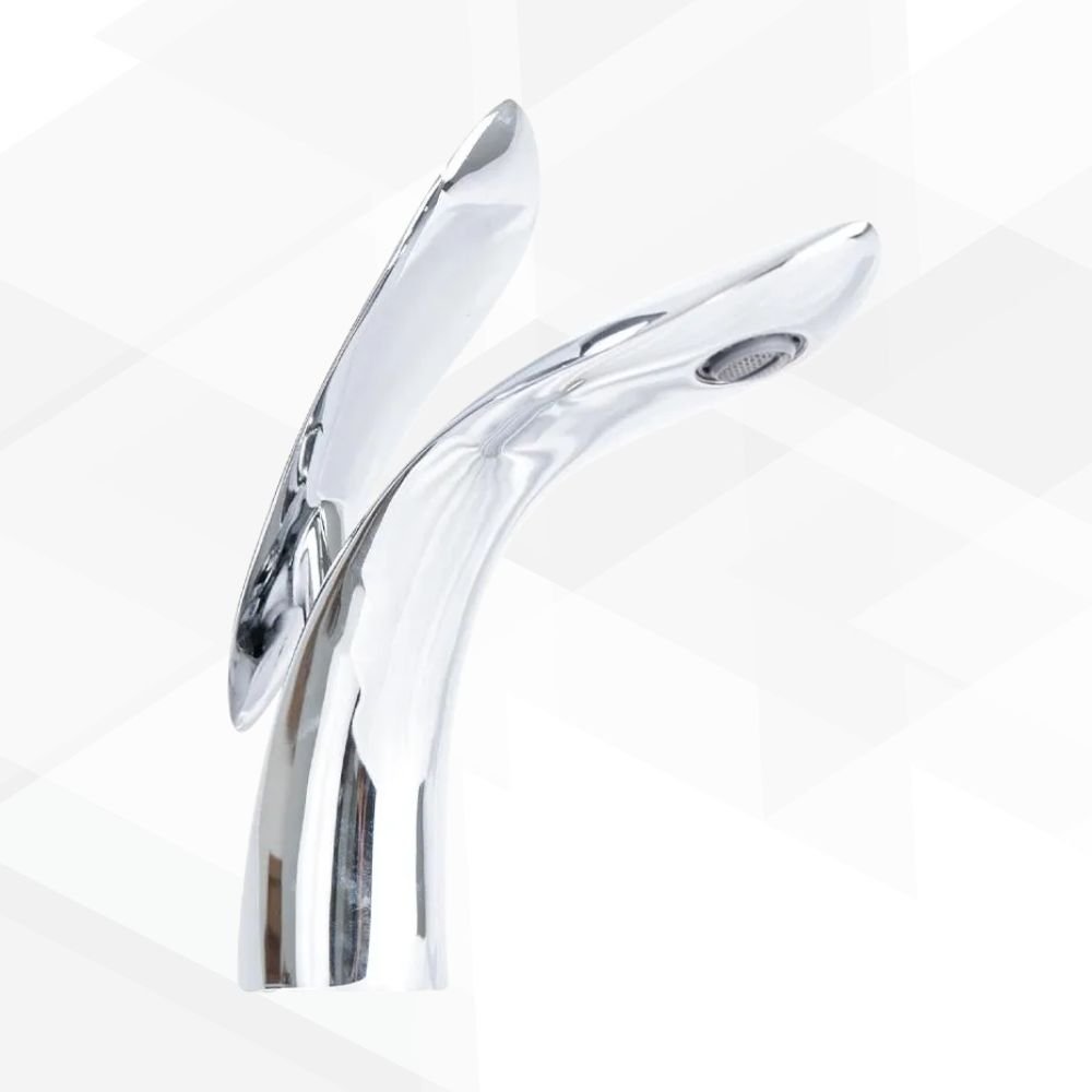 Convierte tu lavatorio en una pieza de arte con esta grifería monocomando de diseño audaz e innovador. Su forma curva, inspirada en una hoja o pétalo, y el deslumbrante acabado Plata Brilloso (cromo pulido) lo hacen el centro de todas las miradas. Se instala al mueble y ofrece un control fluido y preciso de agua fría y caliente.