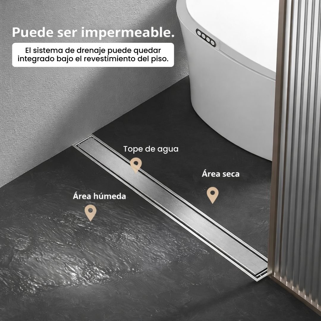 Diseño moderno y funcional para duchas de alto rendimiento. Fabricado en acero inoxidable de calidad premium, garantiza resistencia a la corrosión, durabilidad y fácil mantenimiento. Su sistema reversible permite instalarlo con rejilla visible o con revestimiento del mismo piso, logrando un acabado minimalista y elegante.