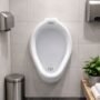 Urinario de diseño moderno en cerámica vitrificada de alta calidad, con acabado brillante y superficie de fácil limpieza. Su forma ergonómica optimiza el uso y la higiene, mientras que su instalación mural ahorra espacio y aporta un estilo elegante y profesional a baños masculinos.